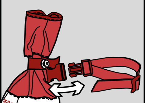 Die Bodenschlaufe ist exakt richtig dimensioniert: Groß genug um im Notfall sofort Halt zu bieten – aber zu klein um die ganze Hand durchzustecken. Dies ist wichtig, denn so kann man im Notfall die Schlaufe auch wieder loslassen. Neben der richtigen Größe kommt es auch auf die richtige Form an: Der “Koffergriff” ist immer griffbereit und von allen Seiten her schnell zu finden.